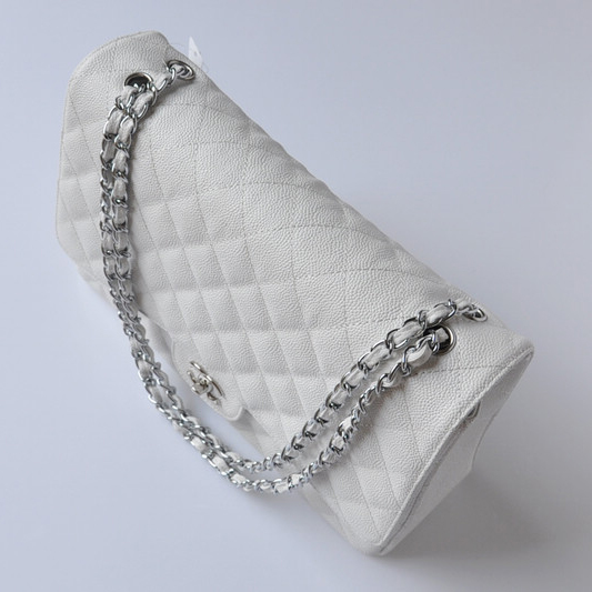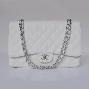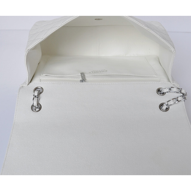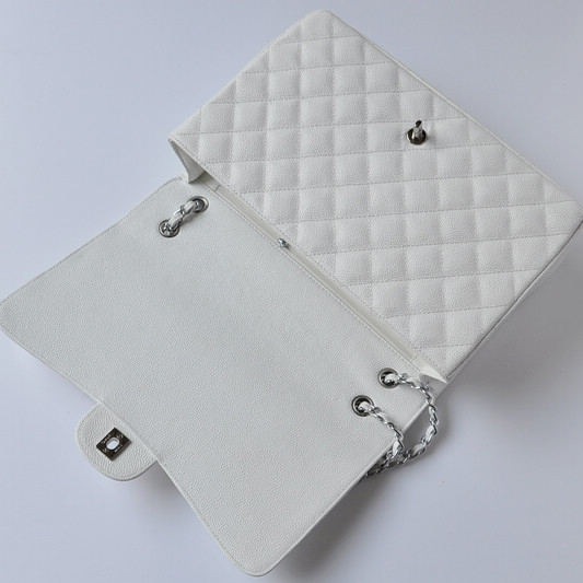 Chanel A47600 Caviar Leather Jumbo Flap Bag in White with Silver