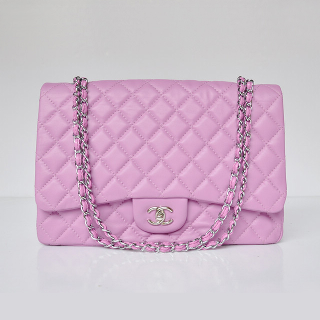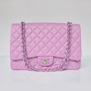 Chanel A47600 Lambskin Leather Jumbo Flap Bag in Pink with Silver
