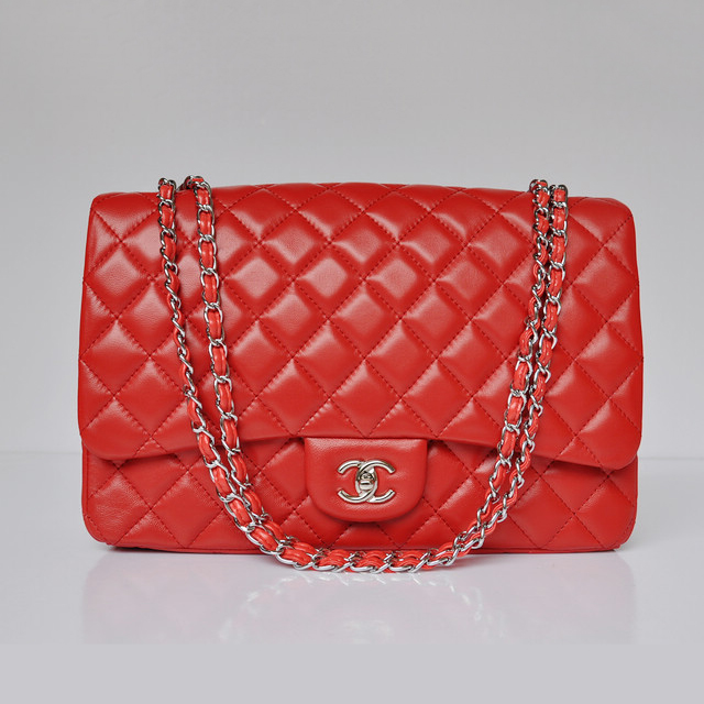 Chanel A47600 Lambskin Leather Jumbo Flap Bag in Red with Silver