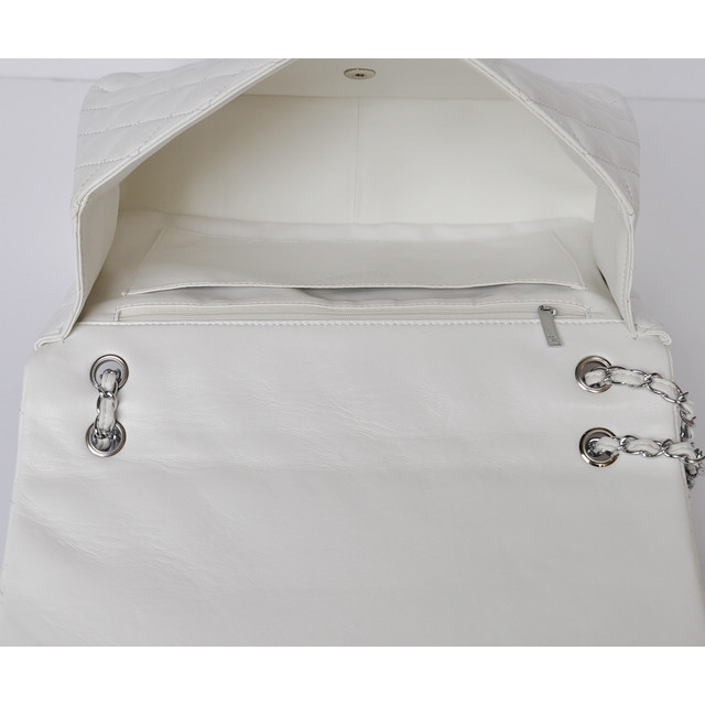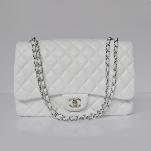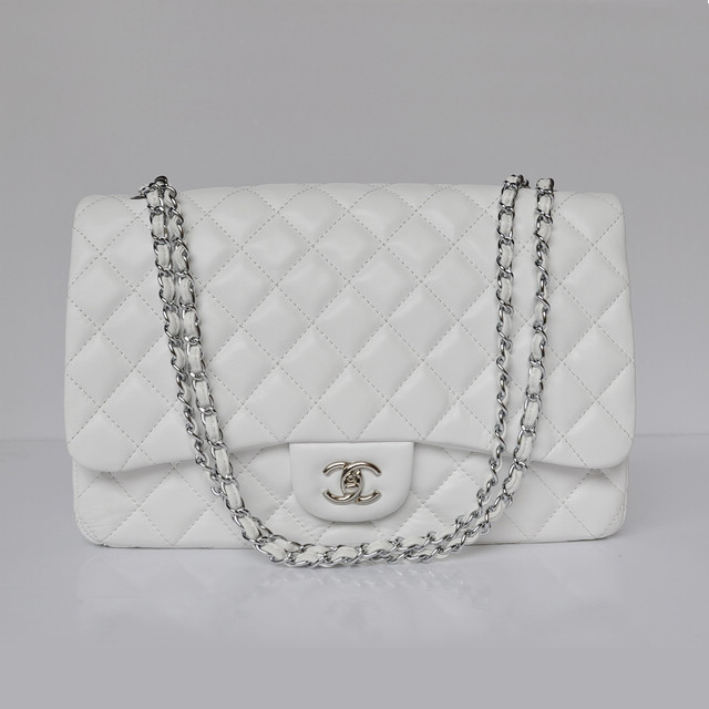 Chanel A47600 Lambskin Leather Jumbo Flap Bag in White with Silver