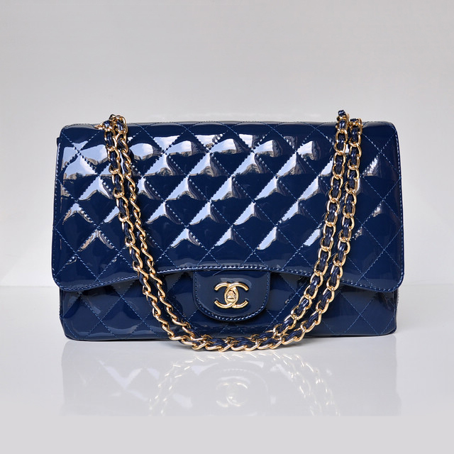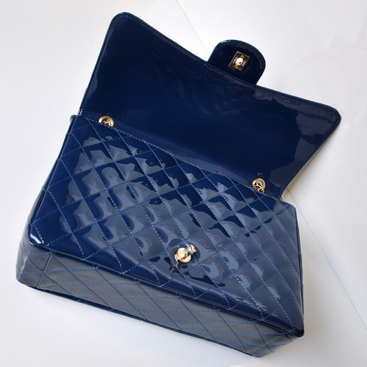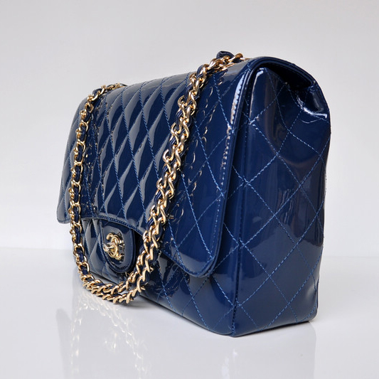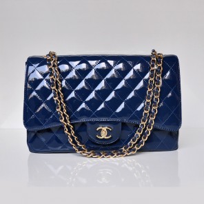 Chanel A47600 Patent Leather Jumbo Flap Bag in Bluet with Gold