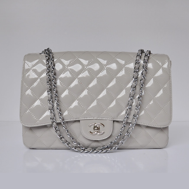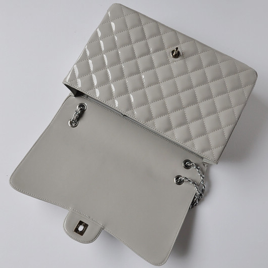 Chanel A47600 Patent Leather Jumbo Flap Bag in Gray with Silver