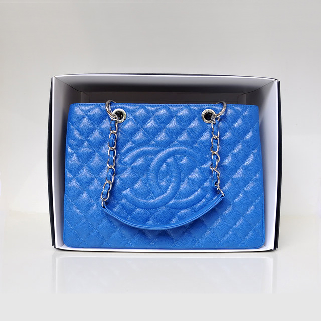Chanel A50995 Original Caviar Leather Shoulder Bag Blue in Silver