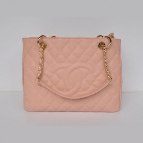 Chanel A50995 Pink Cannage Leather Shoulder Bag Gold