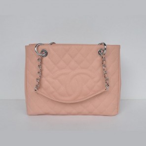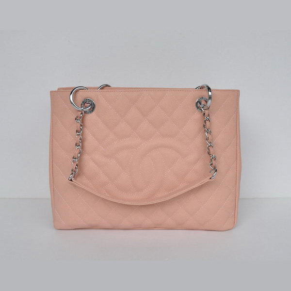 Chanel A50995 Pink Cannage Leather Shoulder Bag Silver