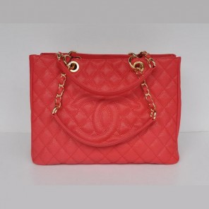 Chanel A50995 Red Caviar Leather Shoulder Bag Gold