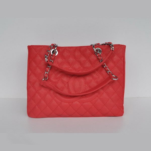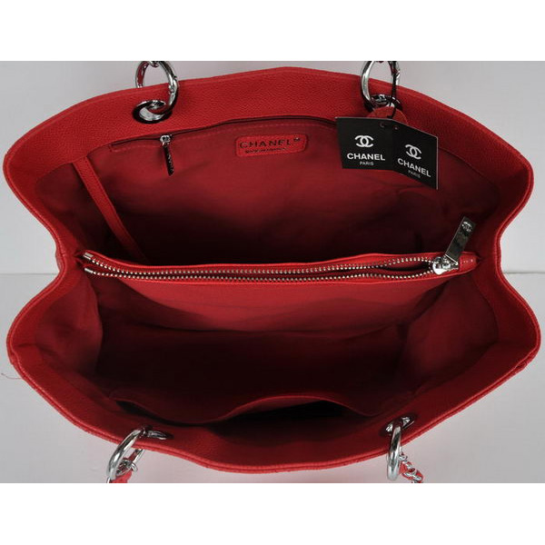 Chanel A50995 Red Caviar Leather Shoulder Bag Silver