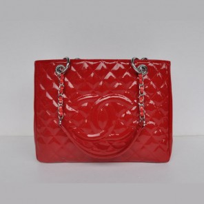 Chanel A50995 Red Patent Leather Shoulder Bag Silver