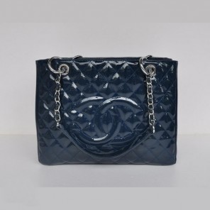 Chanel A50995 RoyalBlue Patent Leather Shoulder Bag Silver