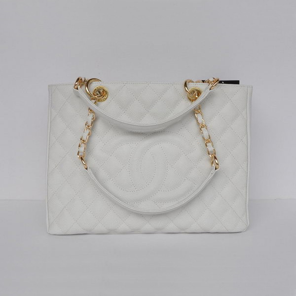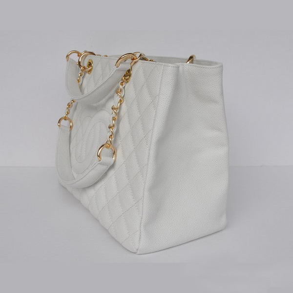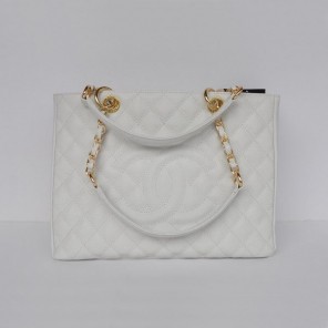 Chanel A50995 White Caviar Leather Shoulder Bag Gold