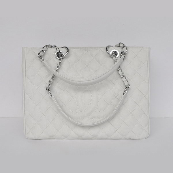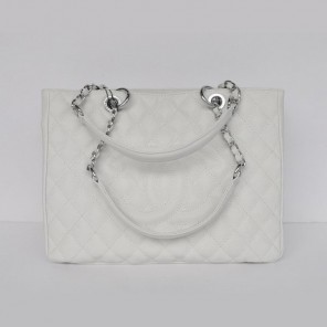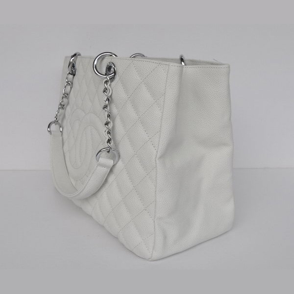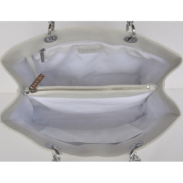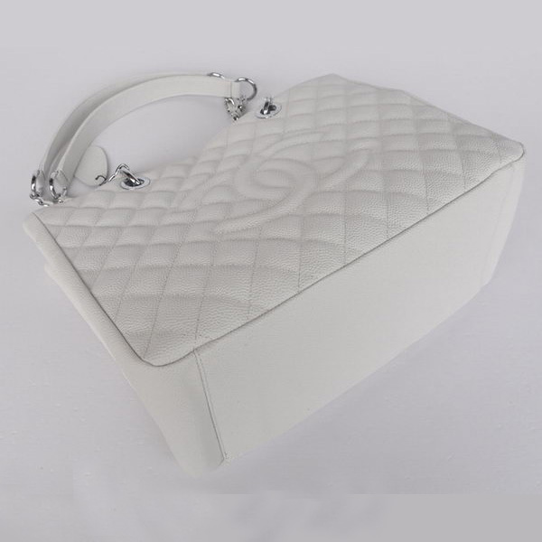 Chanel A50995 White Caviar Leather Shoulder Bag Silver
