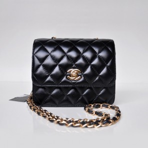 Chanel A67116 Classic mini Flap Bag Sheepskin leather Black in Gold
