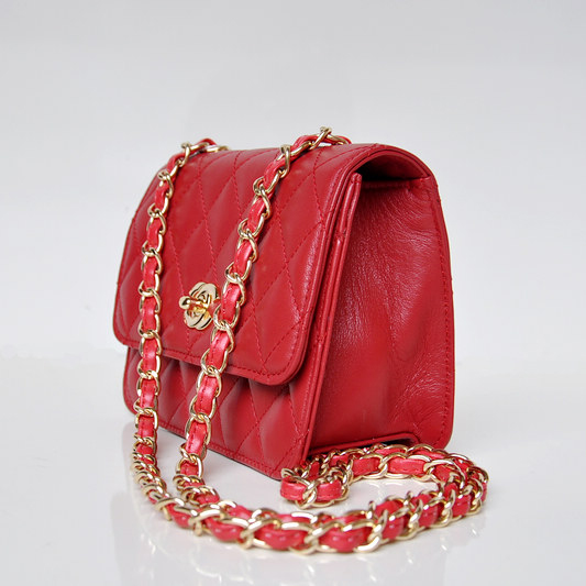 Chanel A67116 Classic mini Flap Bag Sheepskin leather Red in Gold