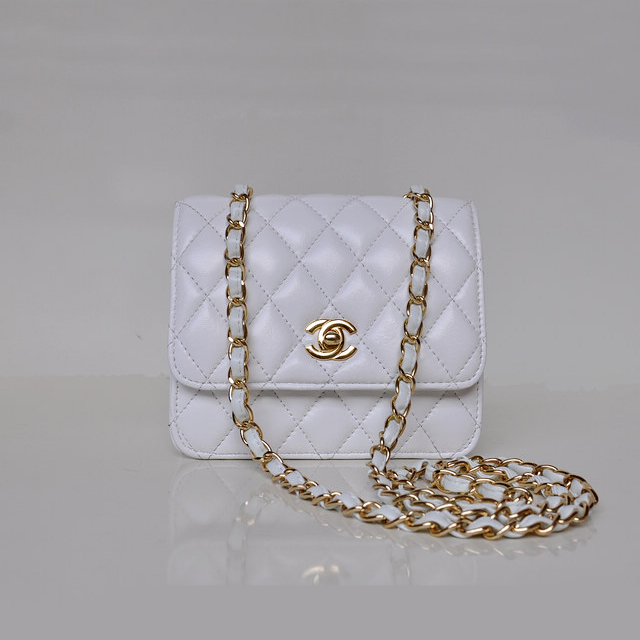 Chanel A67116 Classic mini Flap Bag Sheepskin leather white in Gold