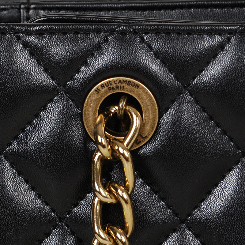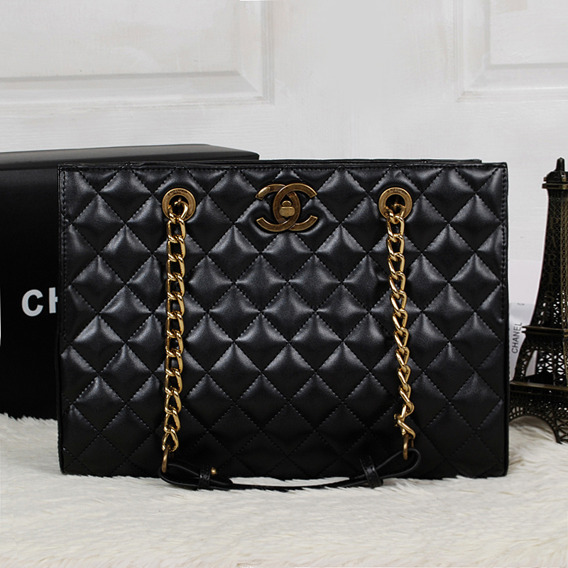 Chanel A67248 Black Original Calfskin Leather Shopping Bag
