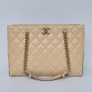 Chanel A67248 Calfskin Leather Shopping Bag in Apricot