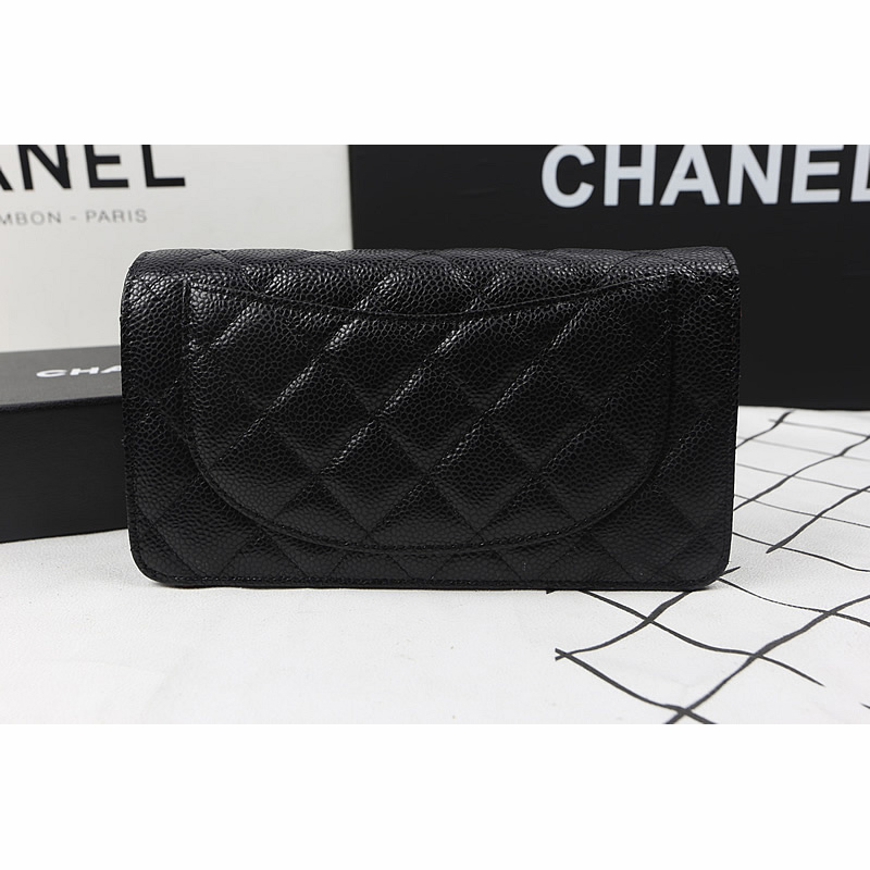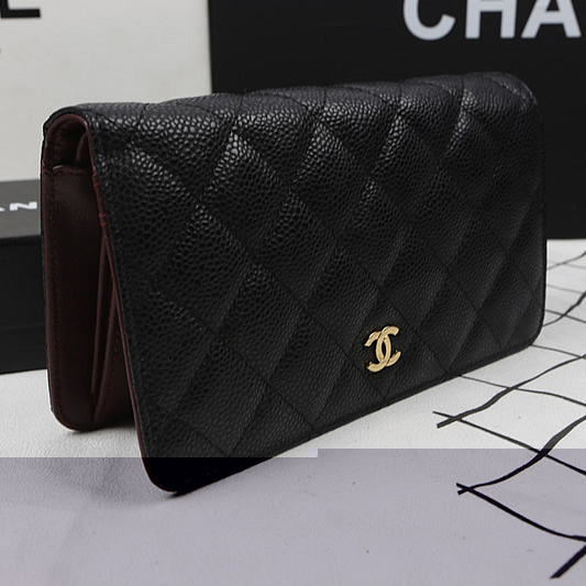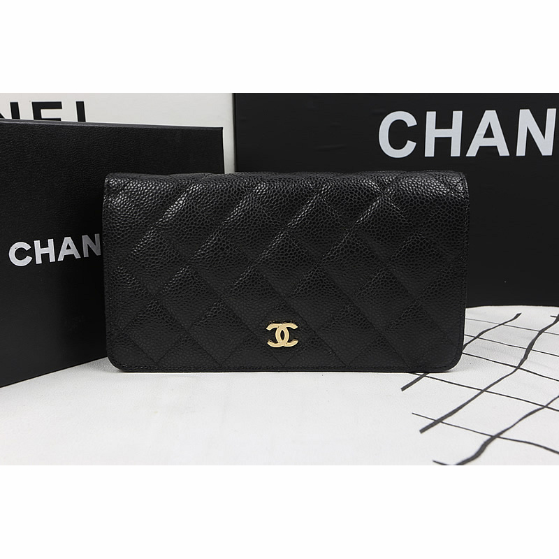 Chanel Bi-Fold Wallet Black Original Caviar leather A31509 Gold