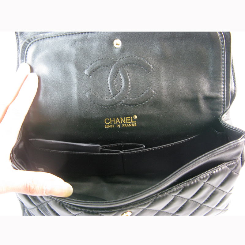 - Closure: Classic Chanel flap with front interlocking CC clasp