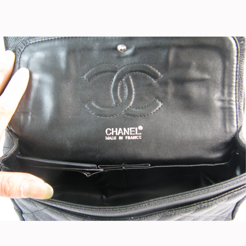 - Closure: Classic Chanel flap with front interlocking CC clasp