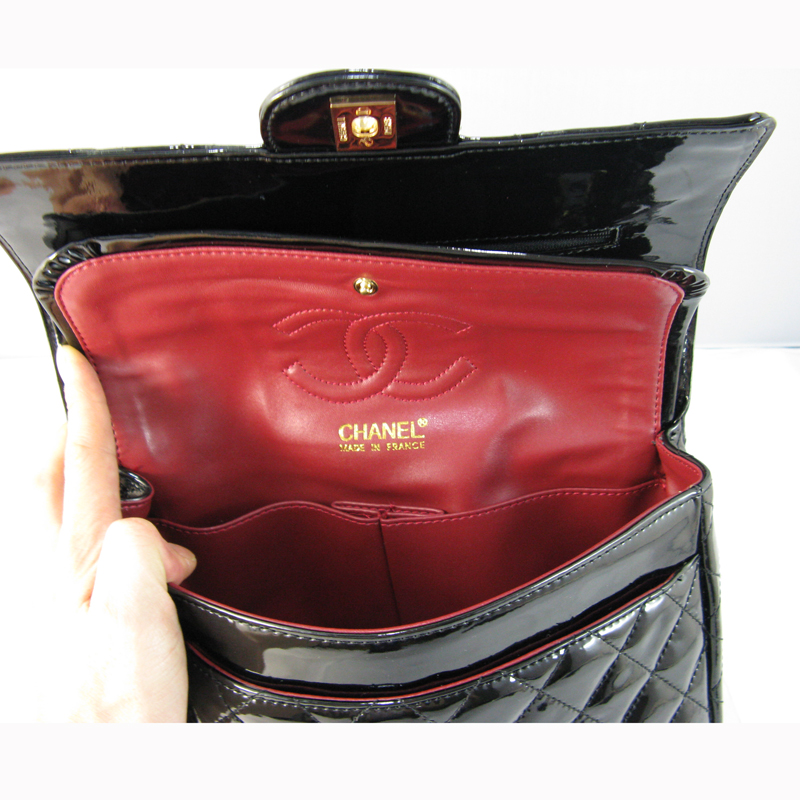 - Closure: Classic Chanel flap with front interlocking CC clasp