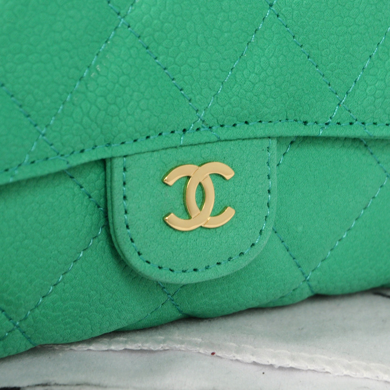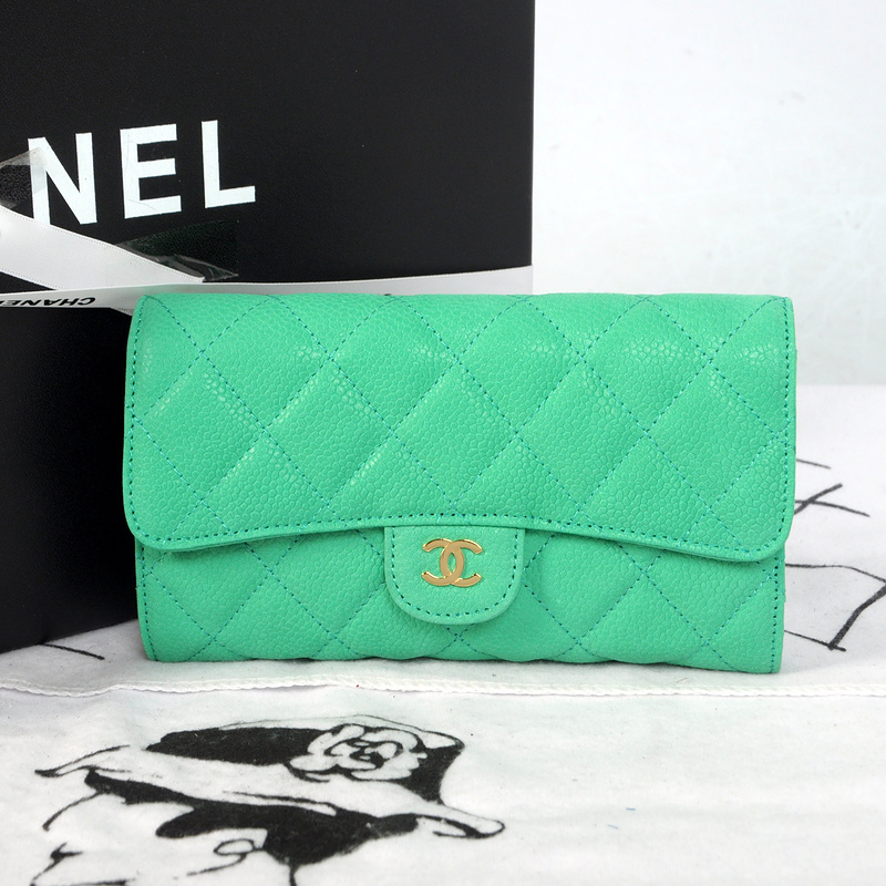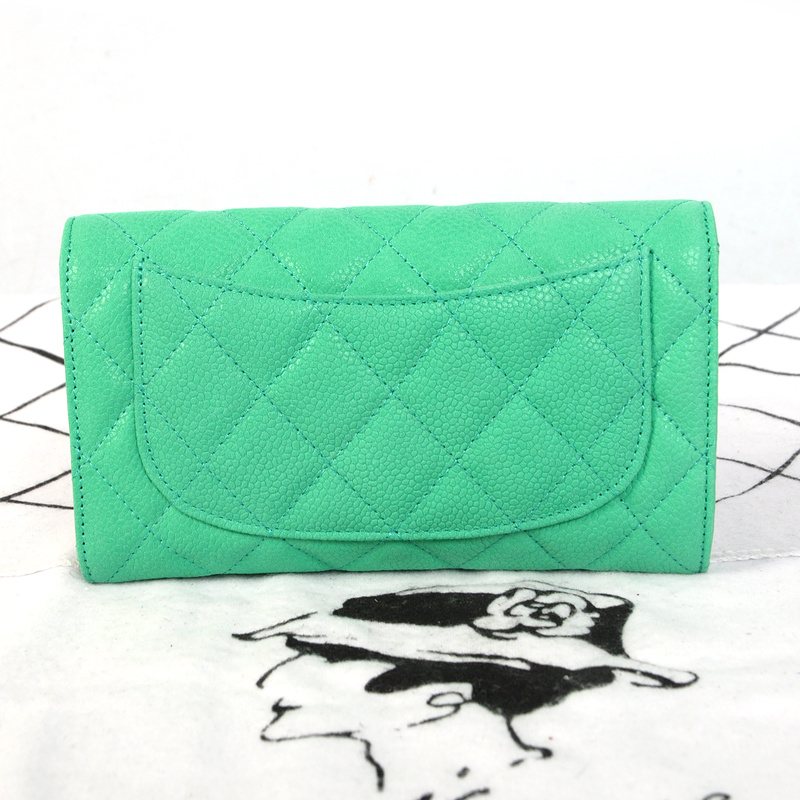 Chanel C006 Apple Green Cannage Pattern Nubuck Leather Long Tri-Fold Wallet