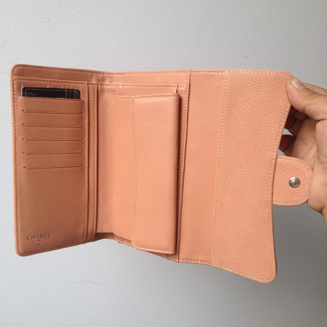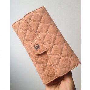 Chanel C006 Apricot Cannage Pattern Nubuck Leather Long Tri-Fold Wallet