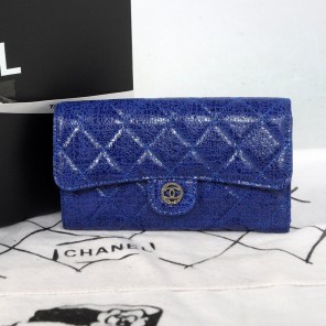 Chanel C006 Apricot Glazed Crackled Leater Long Tri-Fold Wallet
