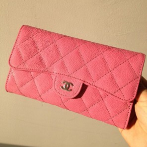 Chanel C006 Ping Cannage Pattern Nubuck Leather Long Tri-Fold Wallet