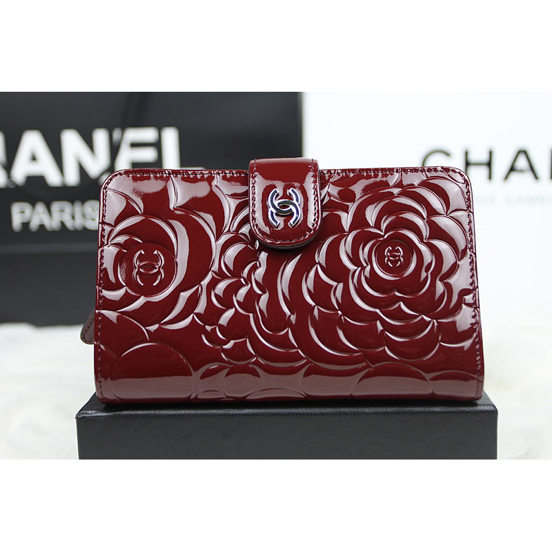 Chanel Camellias Bi-Fold Wallet Original patent Leather A50087 Claret