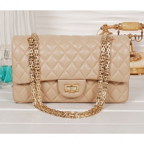 Chanel Classic 2.55 Series Bag Apricot Sheepskin Leather 1112 Gold