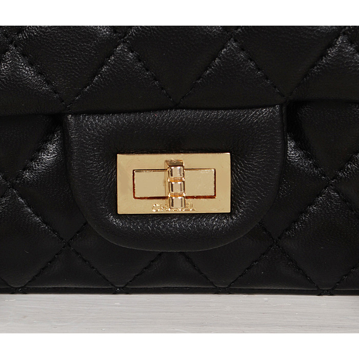 Chanel Classic 2.55 Series Bag Black Sheepskin Leather 1112 Gold