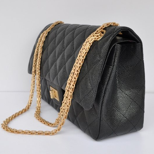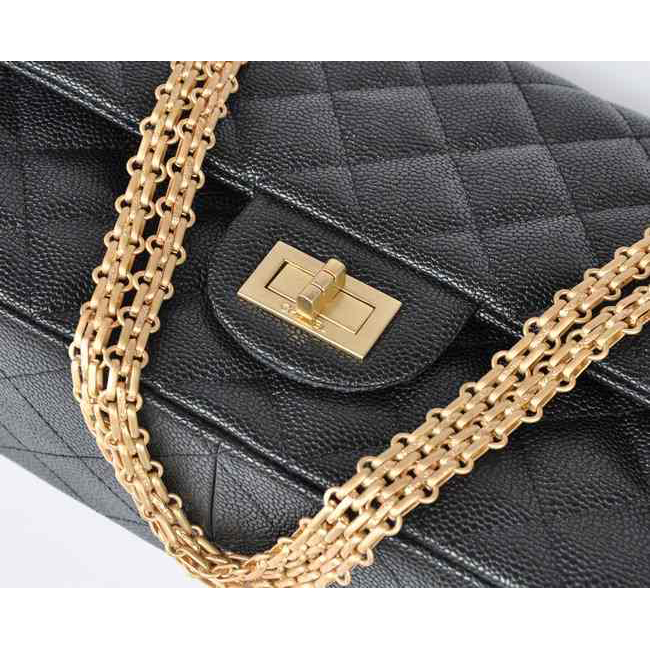Chanel Classic Falp Bag Caviar Leather A28668 in Black with Gold Chain