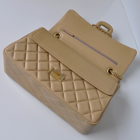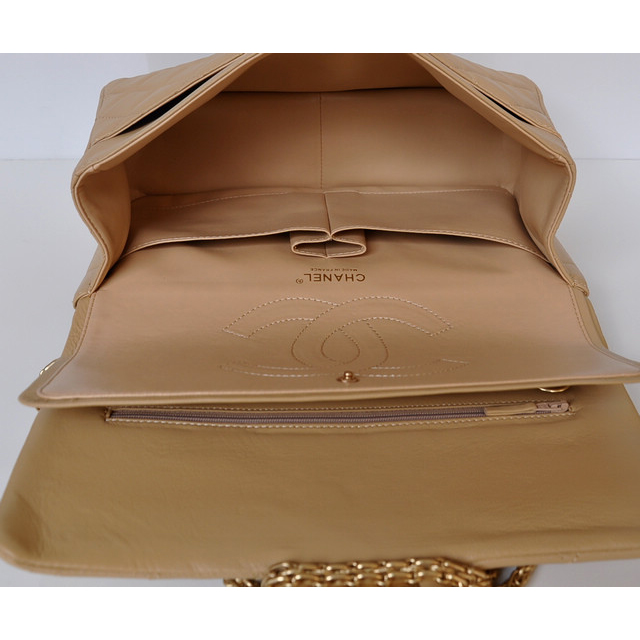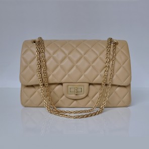 Chanel Classic Falp Bag Sheepskin Leather A28668 in Apricot with Gold Chain