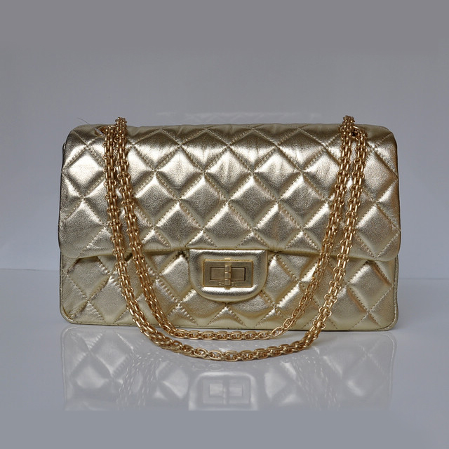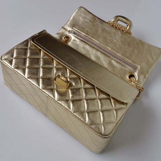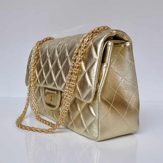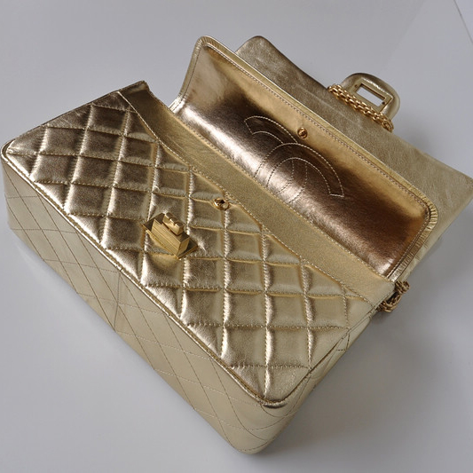 Chanel Classic Falp Bag Sheepskin Leather A28668 in Gold with Gold Chain