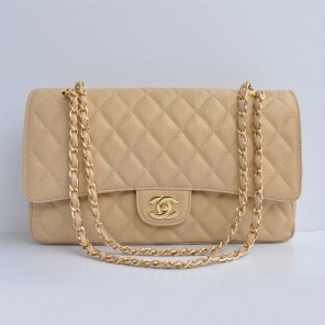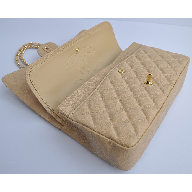 Chanel Classic Flap Bag 1113 Caviar leather in Apricot with Gold