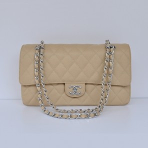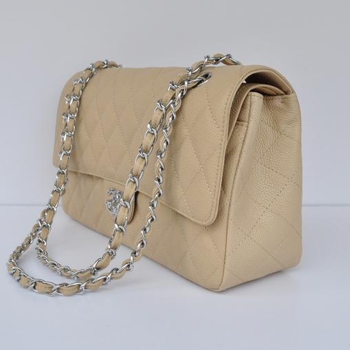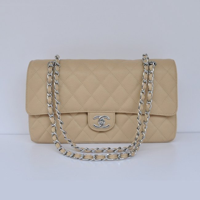 Chanel Classic Flap Bag 1113 Caviar leather in Apricot with Silver