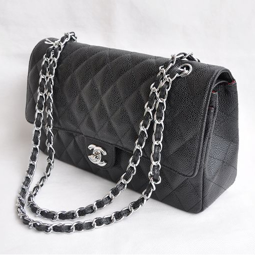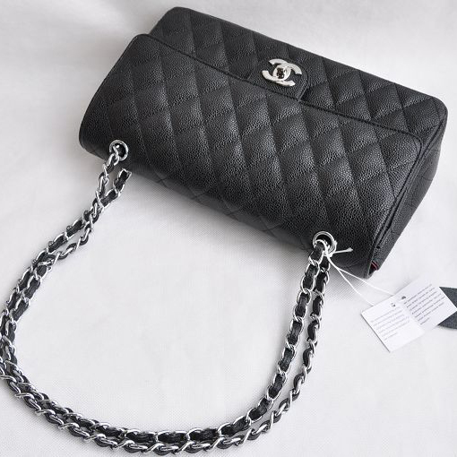 Chanel Classic Flap Bag 1113 Caviar leather in Black with Silver
