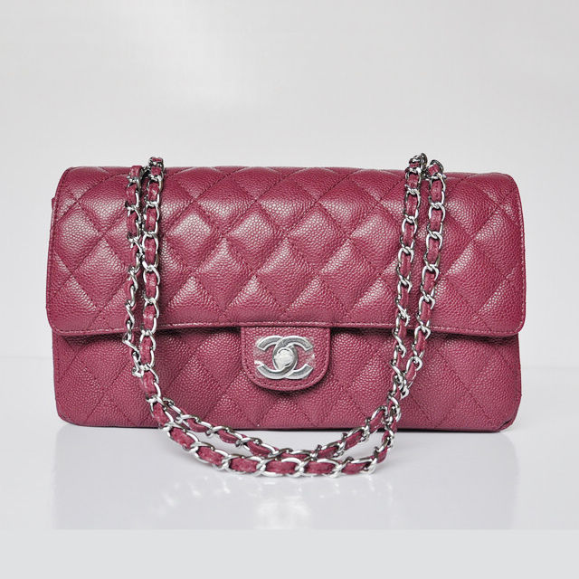 Chanel Classic Flap Bag 1113 Caviar leather in Purple with Silver