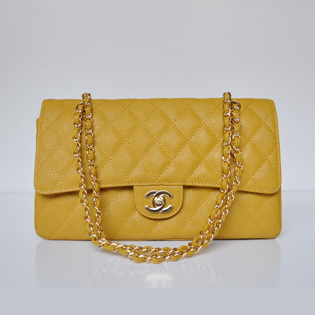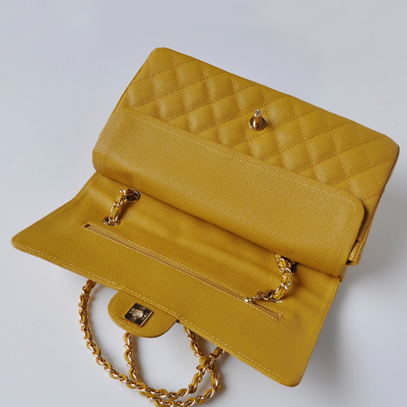 Chanel Classic Flap Bag 1113 Caviar leather in Yellow with Gold