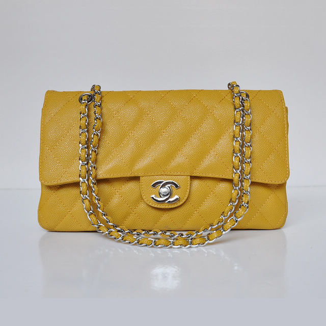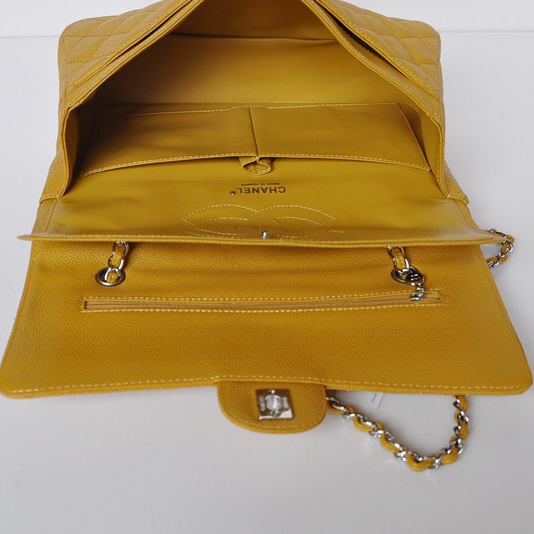 Chanel Classic Flap Bag 1113 Caviar leather in Yellow with Silver