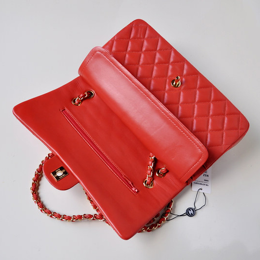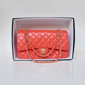 Chanel Classic Flap Bag 1113 Original Lambskin leather in Orange with Gold
