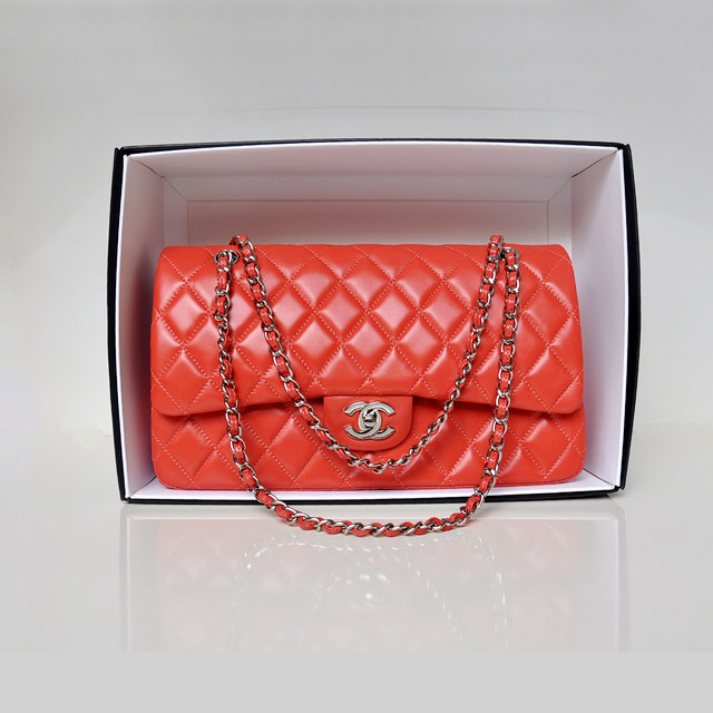 Chanel Classic Flap Bag 1113 Original Lambskin leather in Orange with Silver