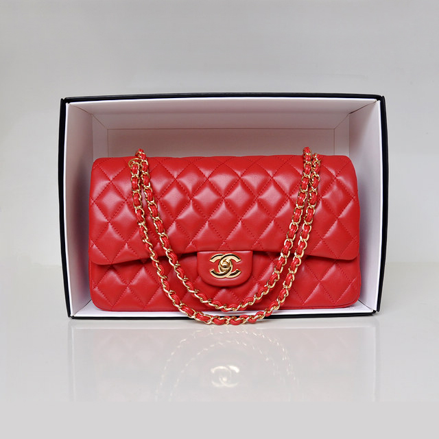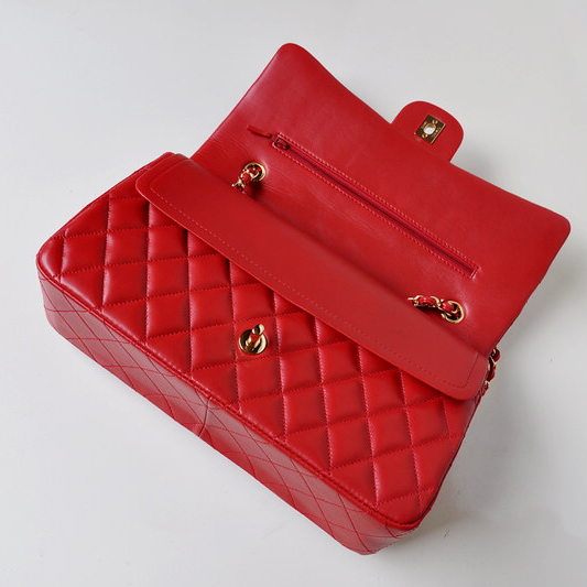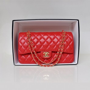 Chanel Classic Flap Bag 1113 Original Lambskin leather in Red with Gold