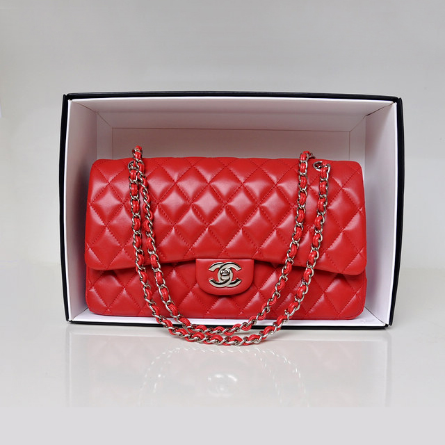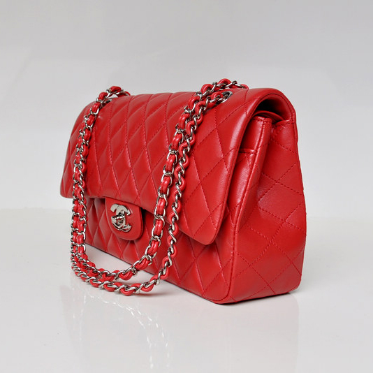 Chanel Classic Flap Bag 1113 Original Lambskin leather in Red with Silver