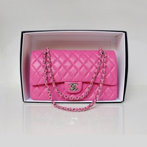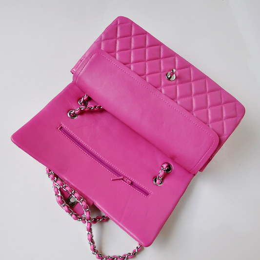 Chanel Classic Flap Bag 1113 Original Lambskin leather in Rose with Silver