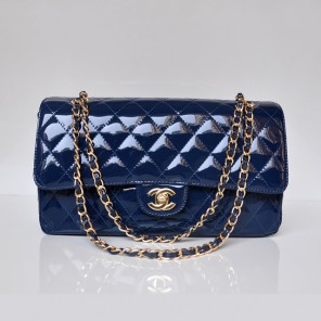 Chanel Classic Flap Bag 1113 Patent leather in Blue with Gold