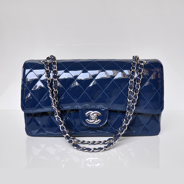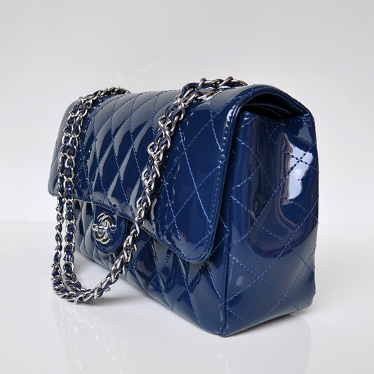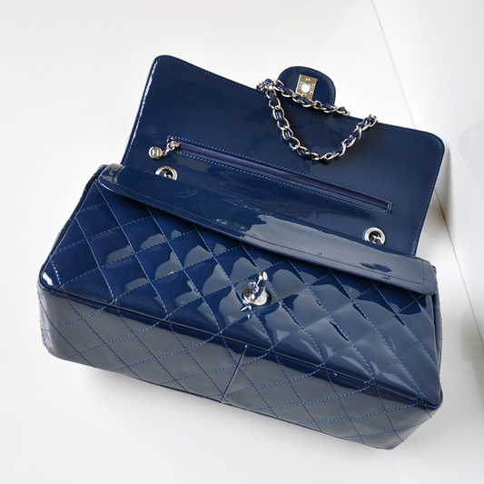 Chanel Classic Flap Bag 1113 Patent leather in Blue with Silver