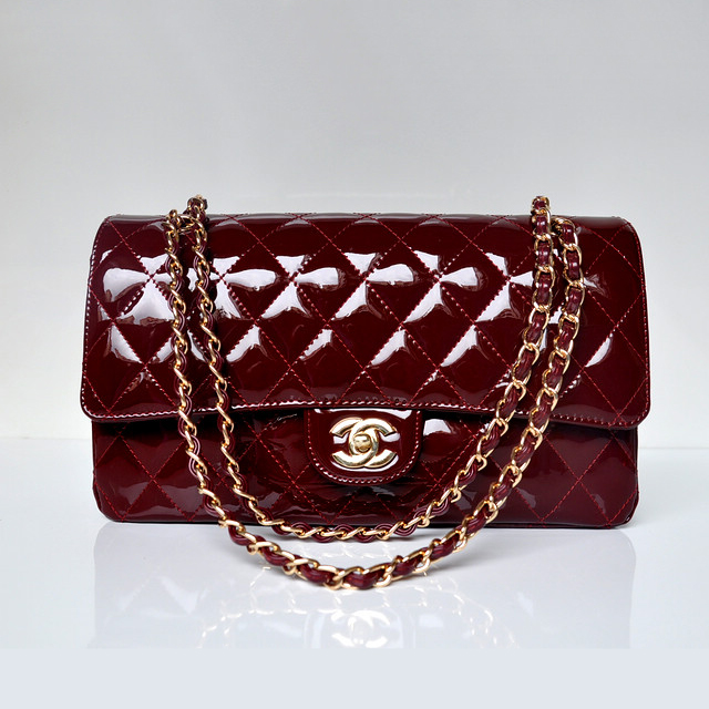 Chanel Classic Flap Bag 1113 Patent leather in Claret with Gold