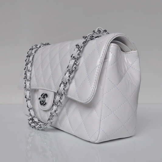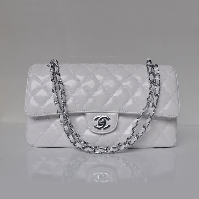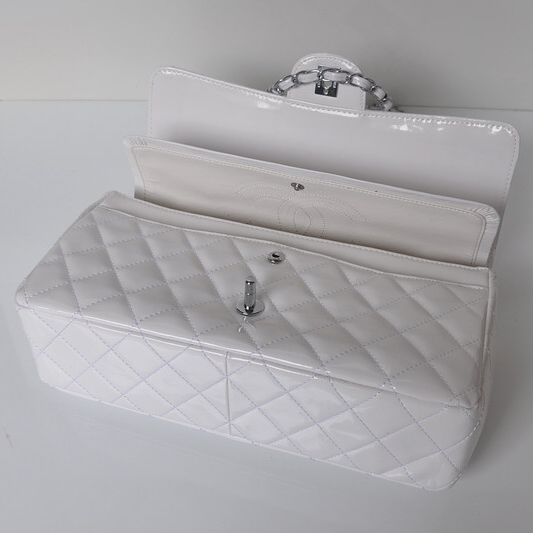 Chanel Classic Flap Bag 1113 Patent leather in White with Silver