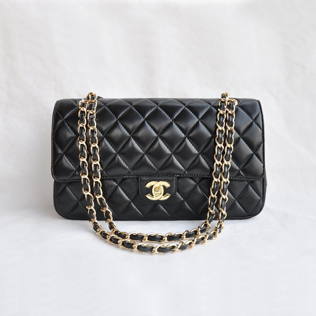 Chanel Classic Flap Bag 1113 Sheepskin leather in Black with Gold